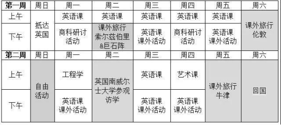 本次活动安排了丰富的英语课程及课外活动,具体有:英语基础课程、雅思课程体验、英国文化课体验、英国南威尔士大学参观访学、短途旅行等。