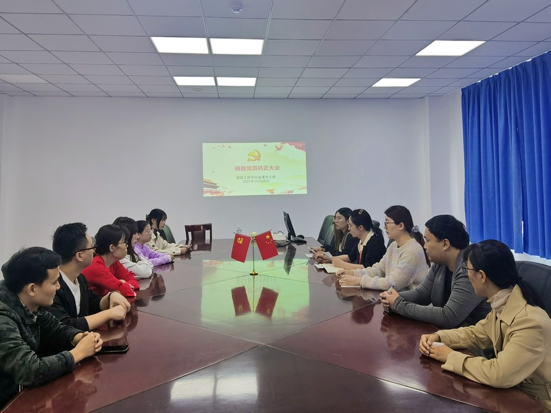 2021102812:00建筑工程学院直属党支部在8-209召开了预备党员转正大会,讨论陈悦怡同学的转正事宜。会议由岳建梅老师主持,我支部共有党员15名,其中有表决权的正式党员7人,出席会议有表决权的党员7人,超过本支部有表决权党员半数,符合规定人数,可以开会。