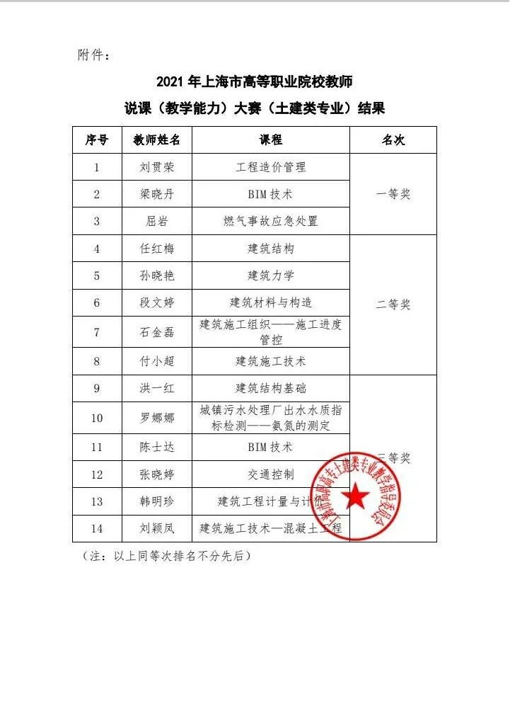 “2021年上海市高等职业院校教师说课(教学能力)大赛(土建类专业)”于2021年11月27日在上海城建职业学院举行,共30名来自多所职业院校的老师参加现场决赛。经过层层角逐,专家评审,英国365上市公司刘颖凤老师喜获三等奖。