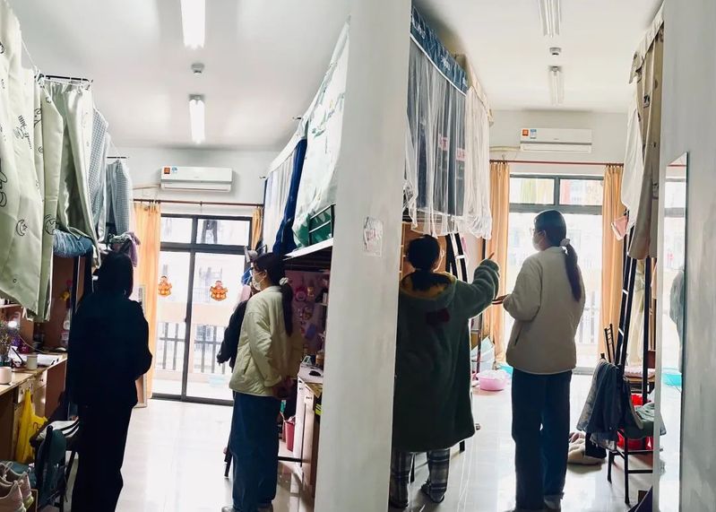 查寝中,副书记岳建梅和辅导员们为同学们在严峻疫情形势下维持安全有序的生活学习氛围提出了一些建议与要求:外出佩戴口罩、勤洗手、多开窗通风、无必要不离沪不出校。同时也提醒大家按照学校发布的管理要求有序进行学习生活,齐心协力共同抗击疫情。不造谣、不信谣、不传谣,保持乐观与冷静。