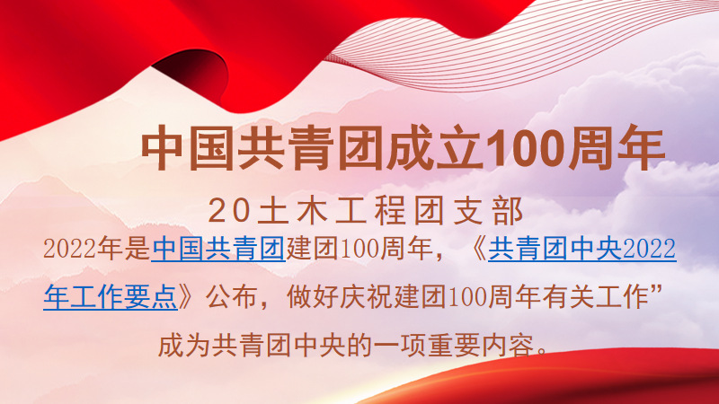 2022年是中国共产主义青年团建团100周年。100年的风雨兼程、100年的砥砺前行,一代又一代的共青团员在岗位上默默付出,在共青团精神的熏陶下,我们不忘初心、牢记使命,为实现中华民族的伟大复兴中国梦而奋发图强。中国共青团在中国共产党领导下不断发展壮大,始终站在革命斗争的前列。作为新时代的共青团员,我们要争做有理想、有本领、有担当的时代青年,在新时代新征程上留下无悔的奋斗足迹,擦亮“青春底色”。