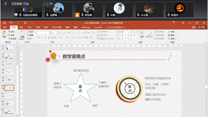 首先,刘颖凤老师分享了《土木工程材料》教学的心路历程。她围绕课程分析、教学设计、教学过程、教学反思展开,介绍了该门的课程教学经验。并对教学目标、学情分析、教学内容、教学重难点、教学方法、考核评价进行详细的介绍。分享会后,全体教师表示干货满满,每位专业教师发表意见进行了点评。