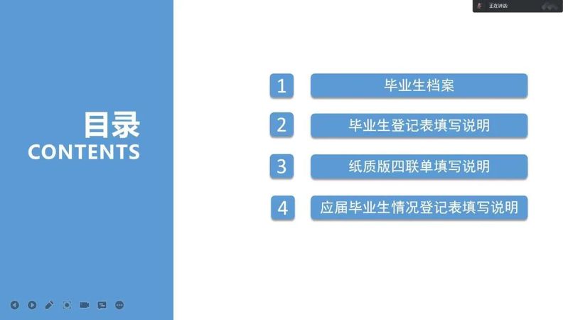 会议伊始,辅导员王馨苑就今年经济下行压力和新冠肺炎疫情的双重影响下,分析了当前毕业生面临的就业市场及形势,随后就毕业生材料的填写和递交做了详细说明。