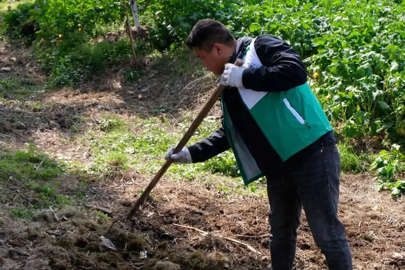 志愿者分成两队,一队协助土地翻新,一队协助垃圾清理,在社区代表的号令下,乡村振兴活动有条不紊的组织着,从拆除栅栏到夯实土地,从垃圾清理到除去杂草,志愿者们脚踩着泥土,手持着工具,顶着烈日劳作,时不时传来泥土的芬芳。社区长辈们对我们的指导,让建筑工程志愿者们在劳动中吸取经验,又在疲惫中得到一丝宽慰。整整一个下午,活动在汗水和欢乐中结束。