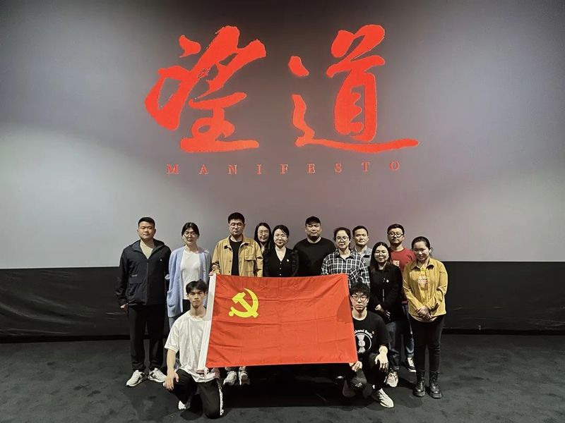 为深入学习贯彻习近平新时代中国特色社会主义思想,感悟思想伟力,凝聚奋进力量,2023年4月19日,英国365上市公司直属党支部组织党员师生观看红色主题电影《望道》。影片以陈望道先生翻译《共产党宣言》为切入点,刻画了20世纪20年代以陈望道为代表的一批知识分子群像,表现了先辈们追寻真理、坚守大道的崇高革命精神。