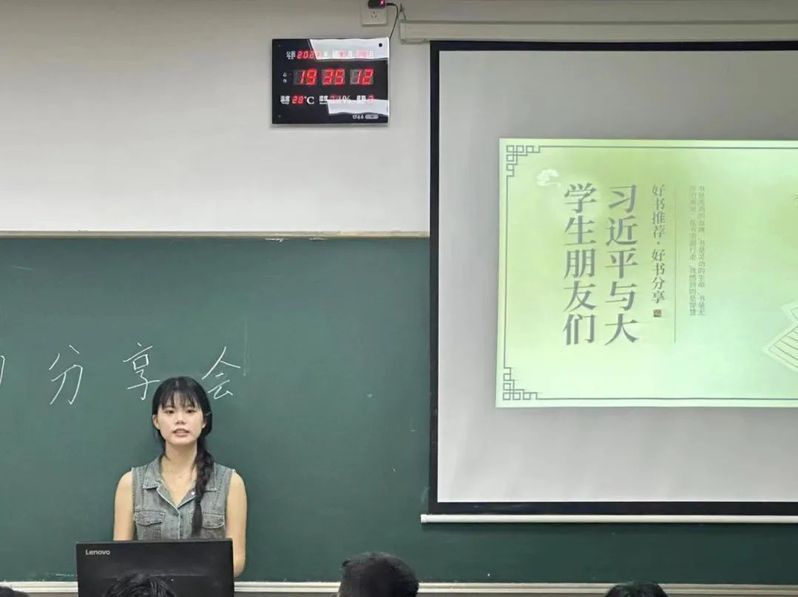 分享会上,分享者王嘉奕从书籍的简介、书籍主人公介绍、内容详情介绍、阅读感悟分享四个方面介绍了本次会议分享的书籍《习近平与大学生朋友们》。本书从习近平总书记仍在福州市担任闽江职业大学校长时开始叙述,讲述了当代大学生和共青团员青年们学习领会习近平新时代中国特色社会主义思想、为实现中华民族伟大复兴的中国梦贡献青春力量的生动故事。