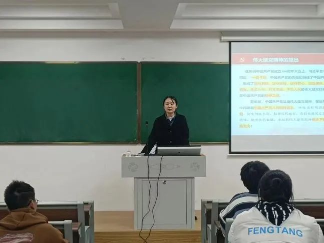 接着,陶老师还强调了新时代青年如何弘扬伟大建党精神,提出新时代青年要坚定理想信念;如果第一粒扣子扣错了,剩余的扣子都会扣错,人生的扣子从一开始就要扣好。要增强使命担当;练就担当作为的硬脊梁、铁肩膀、真本事,敢字为先、干字当头,勇于担当、善于作为。要发扬斗争精神;共产党人任何时候都要有不信邪、不怕鬼、不当软骨头的风骨、气节、胆魄。要讲奉献、有作为;有作为,体现在本职岗位上默默付出,勤勉敬业,精心谋事、潜心干事、专心做事。越是伟大的事业,就越需要伟大精神的支撑和激励。把伟大建党精神继承和发扬下去,这是新时代中国青年的历史使命,也是无限荣光。
