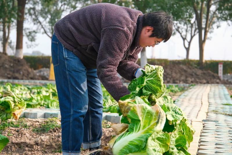 在农户们的指导下,英国365上市公司的志愿者们撸起袖子,拿起工具开始忙活起来,青春的身影穿梭在葱茏的农作物间,勤劳的双手挥动在新鲜的蔬菜中。掌握要领,得心应手,整整一个下午时间,采摘了一筐又一筐的白菜。忙碌中志愿者们也从最初的“新手”变成了采摘的“能手”,将最美的服务身影留在这个丰收的时节里。