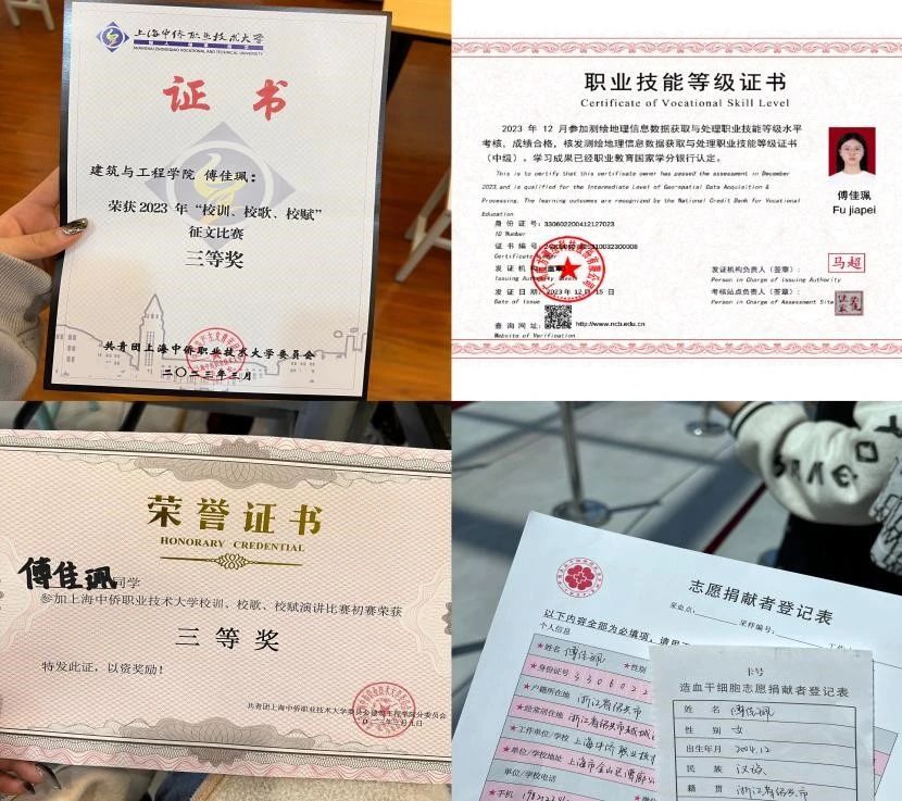 在学习方面,傅佳珮同学坚持以学业为重,严于律己,凭着对个人目标和知识的渴求,勤奋好学,掌握了较为扎实的专业知识与技能,同时将所学理论与技能运用到实践活动中,通过了全国计算机一级,并考取了相关专业证书。另一方面,她还注重各方面知识的拓展,广泛学习其他学科知识,提高自身综合素质,也曾荣获学院演讲比赛三等奖、学校征文比赛三等奖。