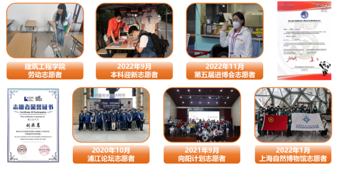 在生活中,积极参加学校组织的各类活动,曾作为演职人员出演过2022年365上市公司迎新年晚会。在疫情期间,积极报名成为学院的疫情防控志愿者,负责组织同学排队做核酸,同时也参加学校的核酸志愿者和宿舍送餐志愿者,服务同学,为同学做实事。此外积极报名中国国际进口博览会的志愿者,成为一名“小叶子”,参加了为期5天的进博会志愿服务。
