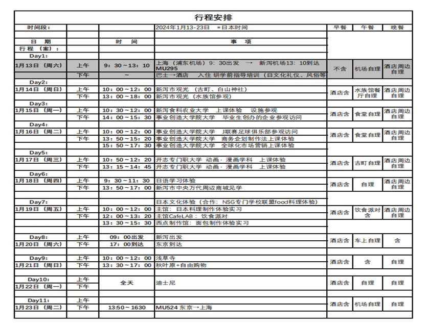 交流生:2024年1月13日-2024年1月23日,为期11天,选派20人。