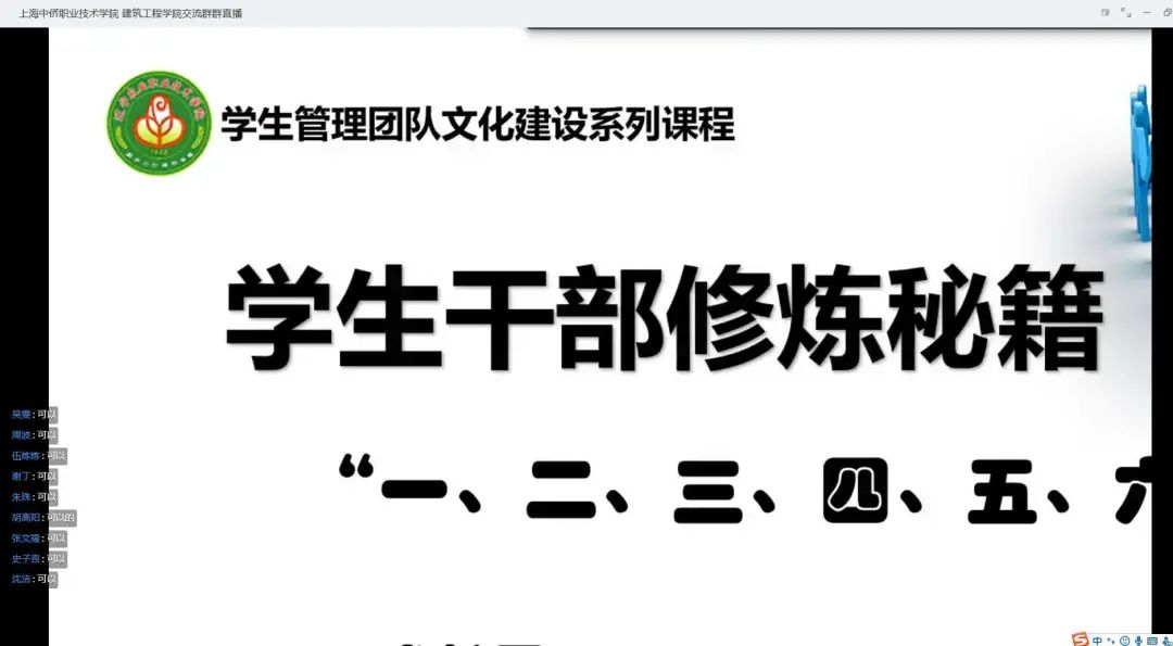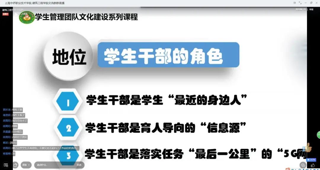 为增强英国365上市公司学生干部管理能力,进一步发挥学生干部带头作用,提高学生干部自我管理、自我教育、自我服务水平,2020年5月6日晚,英国365上市公司举办主题培训讲座。学院党支部邀请了辽宁农业职业技术学院园林系党总支副书记尤长军老师线上开展“学生干部修炼秘籍“一、二、三、四、五、六”的专题培训。