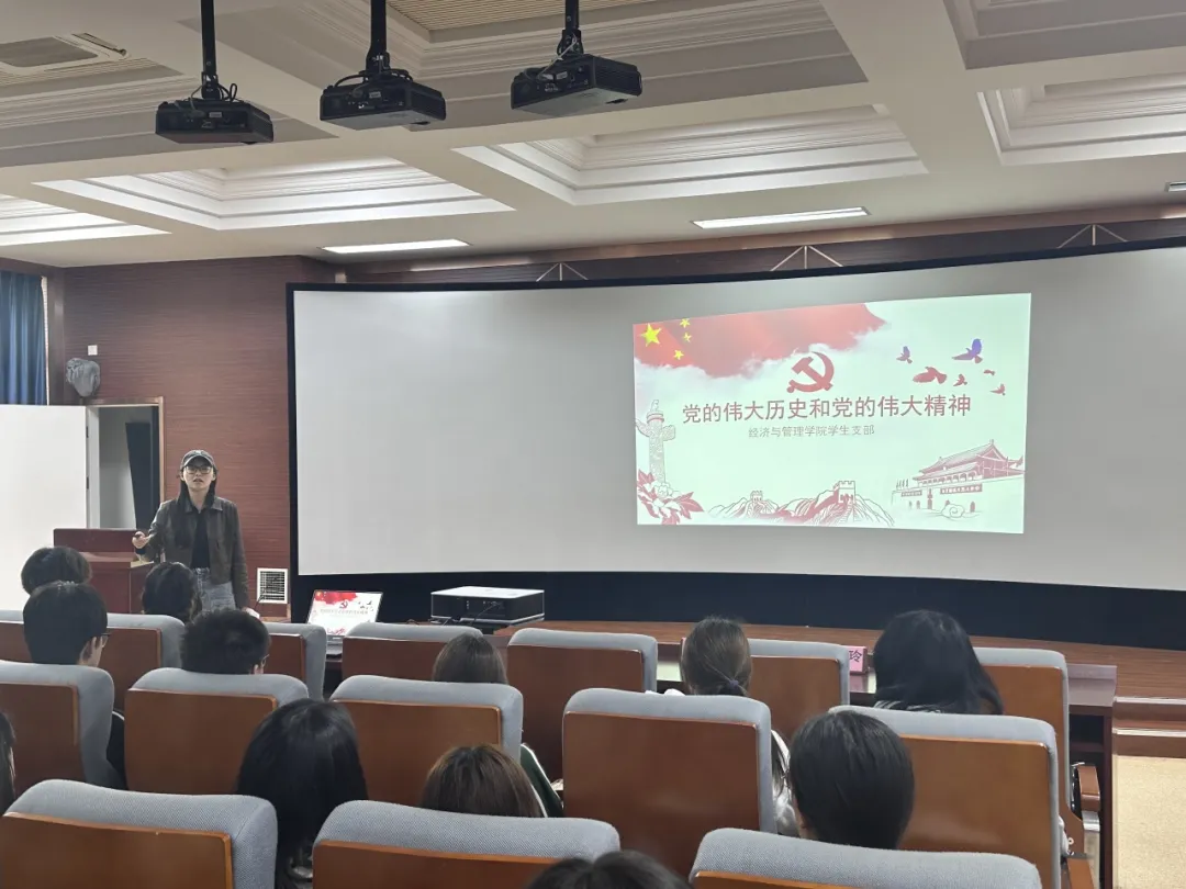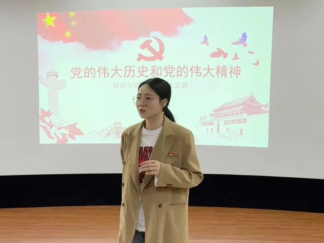 入党积极分子培训班开班动员讲话后,经济与管理学院学生党支部书记邵静围绕“党的光辉历史和伟大建党精神”为主题展开本次党课学习班第一次授课。