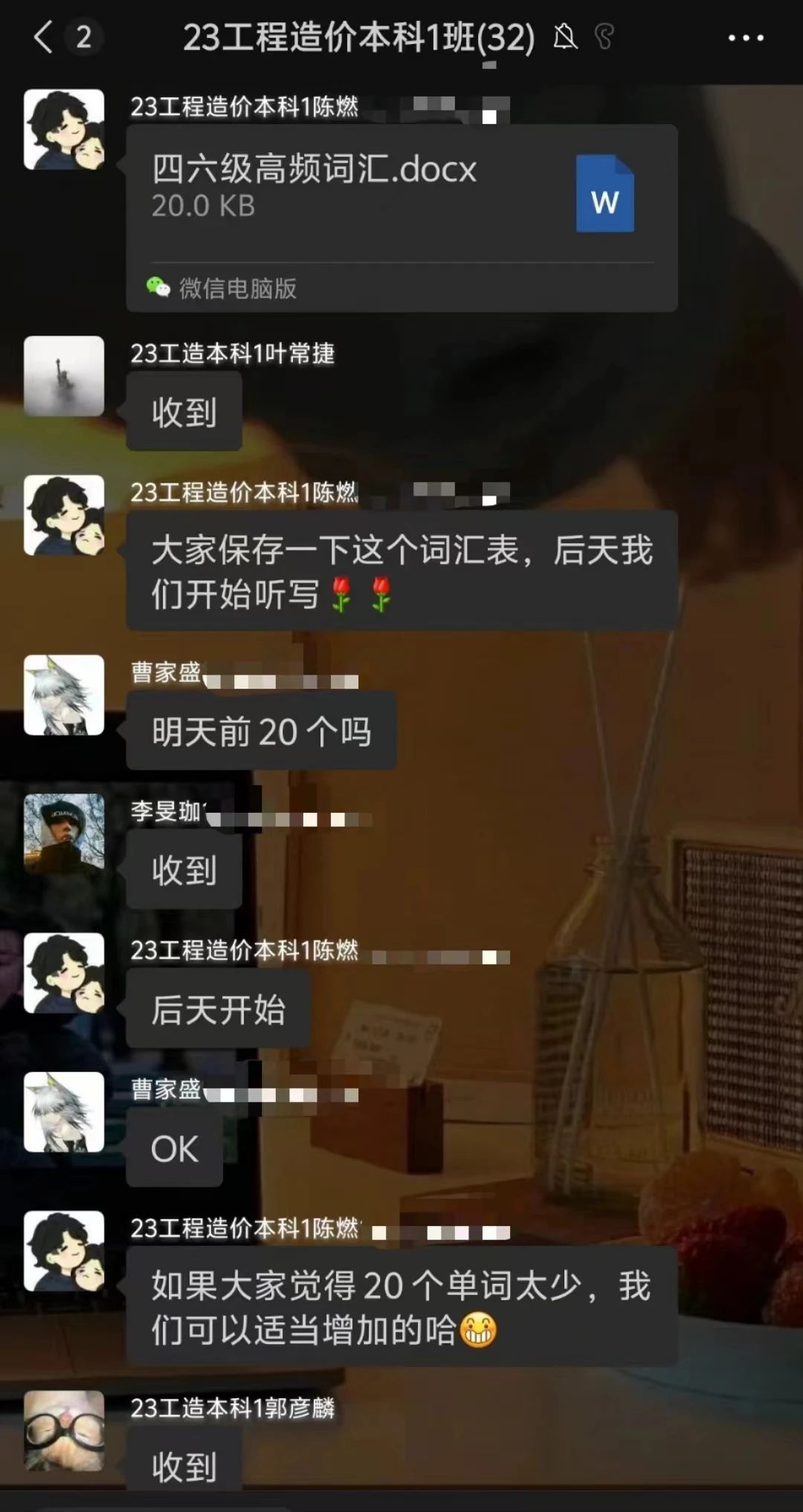 业精于勤而荒于嬉,行成于思而毁于随,7:30的教室坐满了勤奋学习的建工学子。在安静的教室中,同学们沉浸在知识的海洋里,感受着知识带来的乐趣。建工学子们将通过英语四六级作为提高自己学识水平的目标之一。作为英语的基础,默写单词是夯实英语高楼地基的最好方式。23工程造价本科1、2班整理四六级高频考点词汇,自发开展早自习听读默写单词模式。