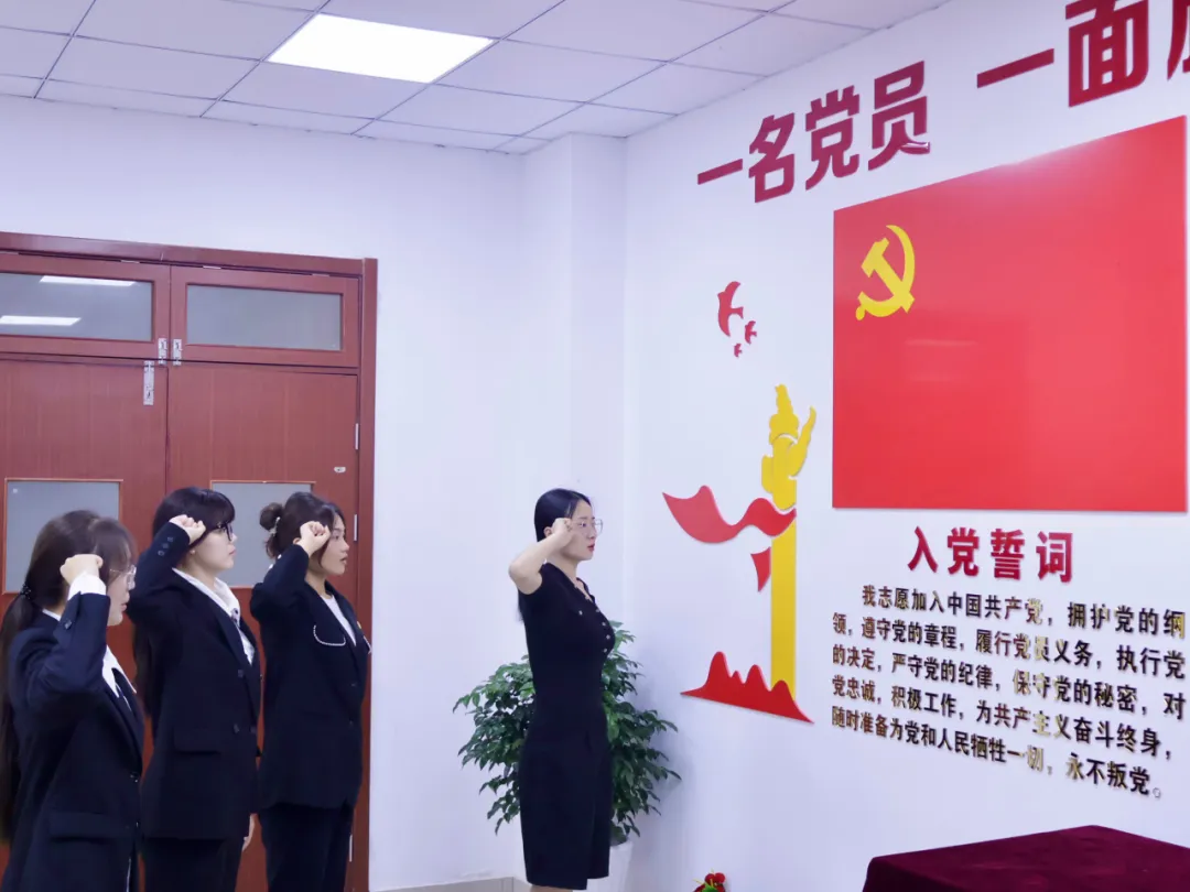英国365上市公司直属党支部副书记岳建梅带领三名预备党员同志宣读入党誓词。