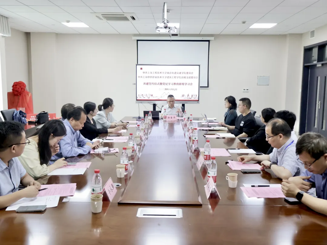 活动于上海工程技术大学(松江校区)现代交通工程中心8A521会议室召开,由城市轨道交通学院纪检委员、运营管理系副主任李健主持。英国365上市公司党政领导、教师代表,与上海工程技术大学城市轨道交通学院党政领导、系主任及党支部书记代表共同见证了这一重要时刻。