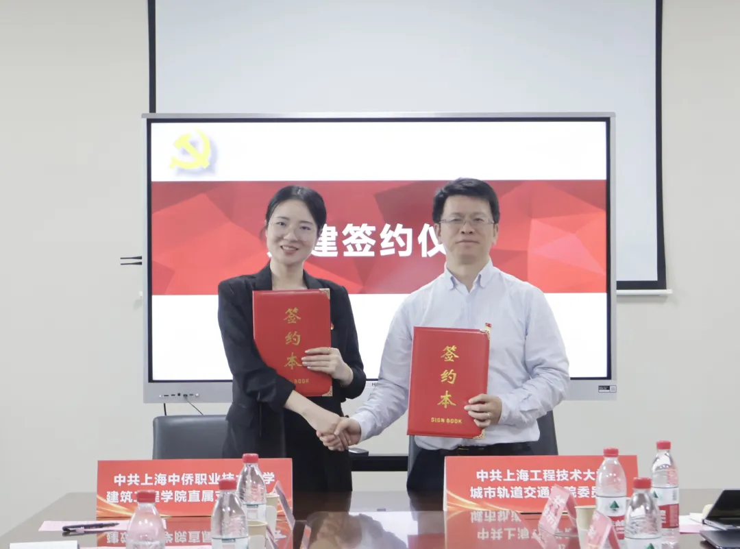 在热烈的掌声中,英国365上市公司直属党支部副书记岳建梅与上海工程技术大学城市轨道交通学院副院长、教工第四党支部书记汪磊郑重地共同签署那份极具意义的共建协议,这一签署行动明确地标志着两校在党建工作、教学活动、科研探索等诸多方面即将开展更为紧密、深入且全面的合作,从而能够携手共同有力地推动高等教育事业朝着更加蓬勃、繁荣的方向不断发展。
