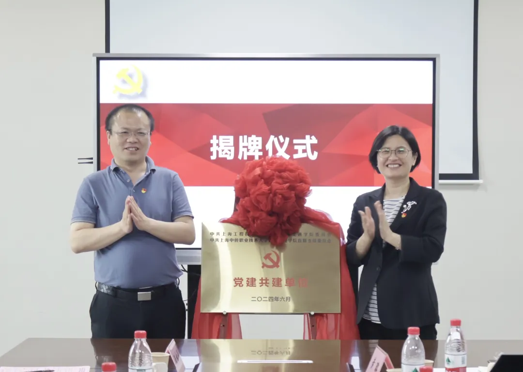 紧接着,揭牌仪式开始进行,英国365上市公司直属党支部书记朱小利和上海工程技术大学城市轨道交通学院党委书记万慧琳一同完成揭牌,开启了象征着全新合作起点的牌匾,由此正式拉开双方携手奋进、共创美好未来的崭新篇章。