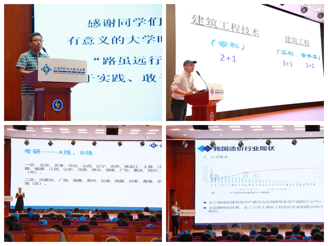 建筑工程本科和专科专业主任吴念、工程造价本科专业主任令永强、工程造价专科专业主任王旭东分别对各个专业进行了解读和课程规划,让同学们对所学专业有了更清晰的认识和更明确的方向,希望同学们能在未来的学习生活中能够认真学习专业知识,不断进步进取。国际交流处老师盛雨濛就国际交流情况对24级新生进行了介绍,推出了一系列适合学生国际交流及学历提升的国际化项目,为大家拓展了新的发展方向。