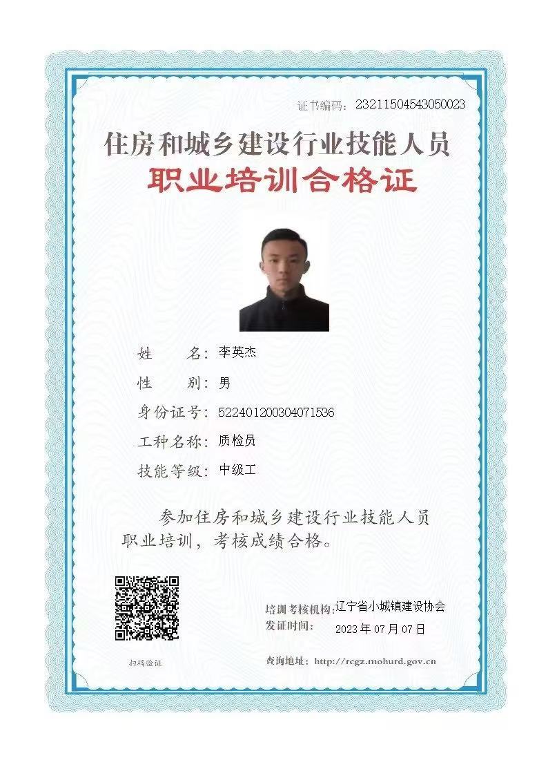 2:建筑行业质检员证书(中级工)
