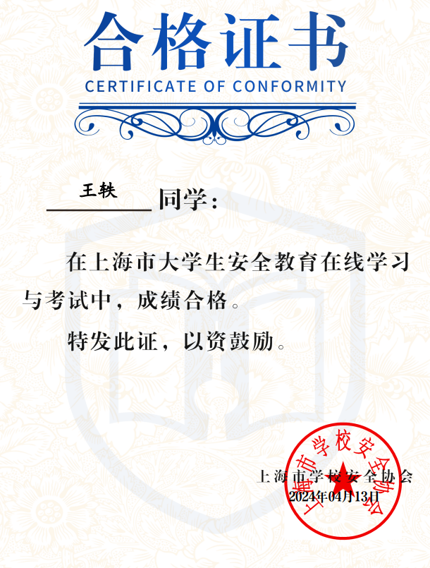 2023年上海市大学生安全教育合格证书