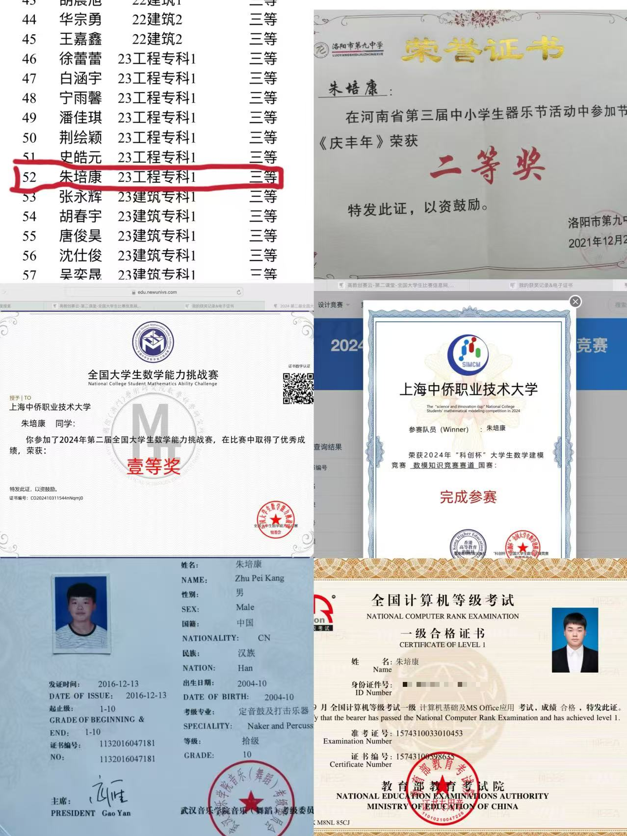 曾荣获2024年科创杯大学生数模知识国赛参赛奖