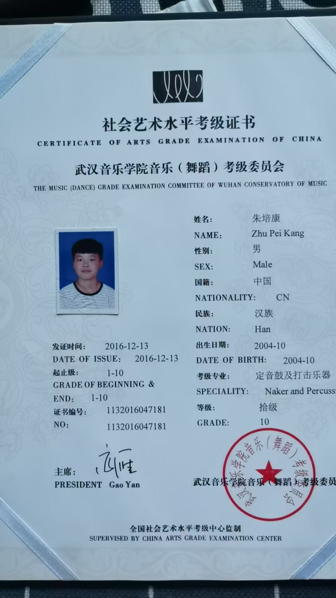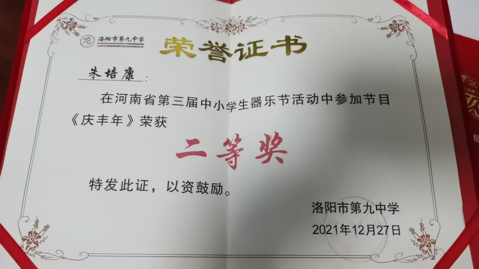 曾荣获2021年河南省第三届中小学生器乐节二等奖