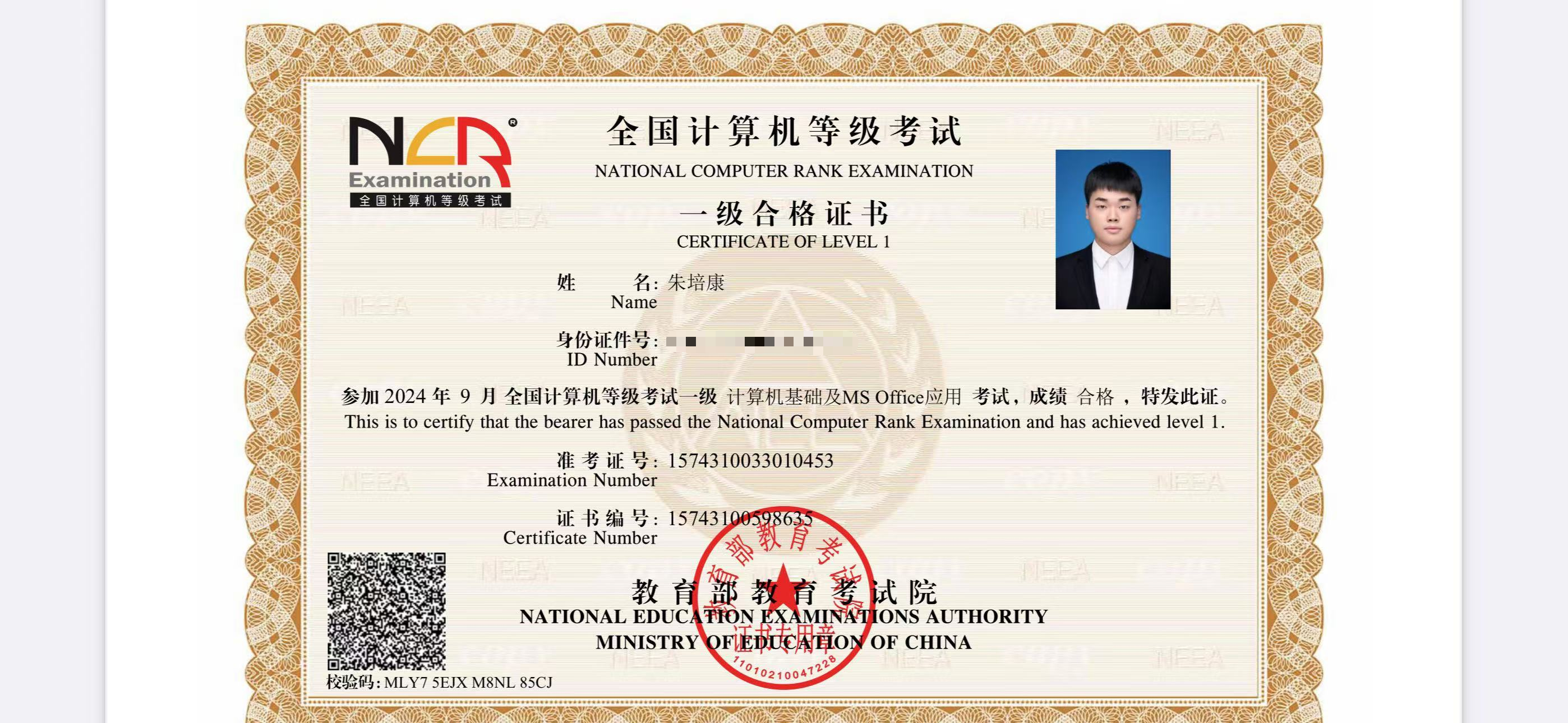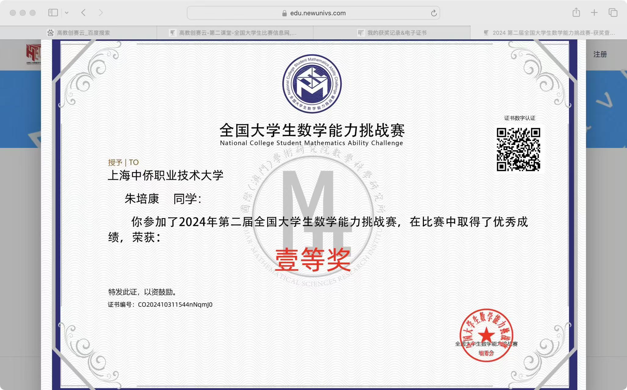 曾荣获2024年第二届全国大学生数学能力挑战赛一等奖