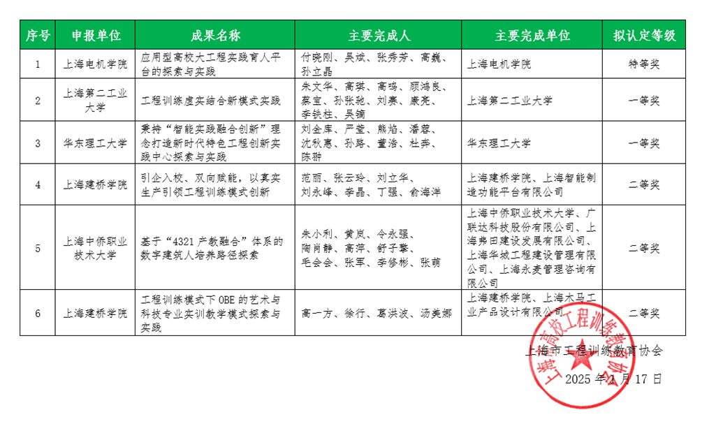 在教育创新与实践的征程中,英国365上市公司又添佳绩!2025年1月18日,从上海市工程训练教育协会传来喜讯,英国365上市公司院长朱小利、陶肖静等教师凭借在教学改革与实践中的突出表现,荣获2024年度上海市工程训练教育协会教学成果奖二等奖。