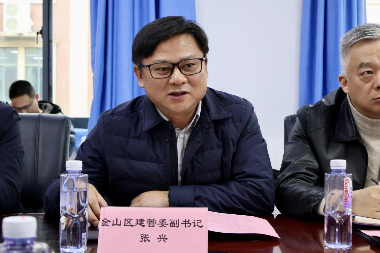 最后,由金山区建管委党组副书记、副主任张兴对座谈会进行总结。他期待在未来“政校行企”合作更进一步,产学研全面发展,希望各方齐心协力,为金山区建筑行业发展贡献强劲力量。