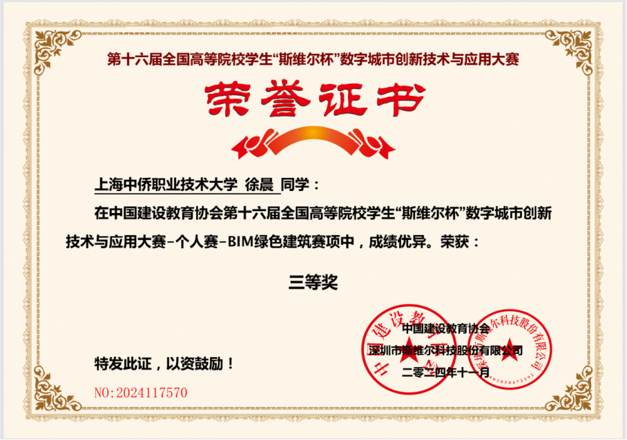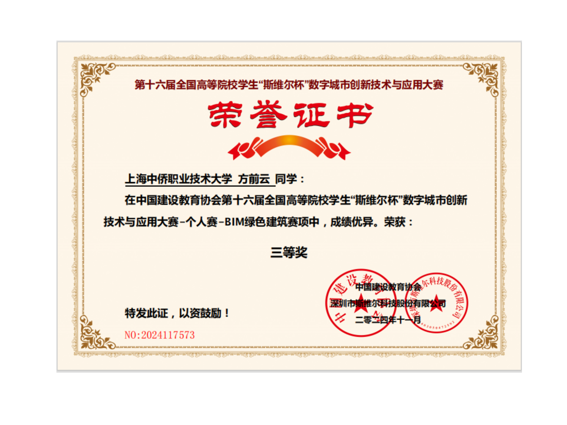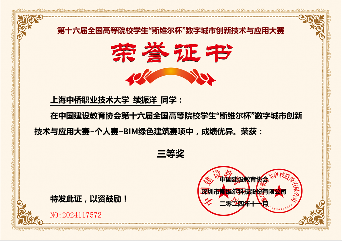 为充分发挥竞赛在促进高技能人才培训、推动开展职业技能培训等方面的重要作用,继续推进BIM、CIM技术在高等院校的教学与应用,深化复合型人才培养。中国建设教育协会举办第十六届全国高等院校学生“斯维尔杯”BIM-CIM创新大赛,英国365上市公司积极参加此次竞赛并获二等奖一项,三等奖一项。