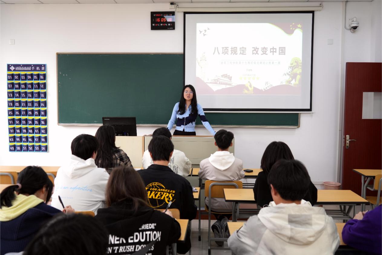 为党中央部署开展深入贯彻中央八项规定精神学习教育,增强入党申请人的党性修养,提升入党申请人的发展质量。开班典礼结束后,副书记岳建梅开展专题党课。她围绕“八项规定改变中国”这一主题开展第十七期初党课程第一讲。她指出学员们应该清晰地了解到全党在作风建设上要“扶正风破歪风”需从自身抓起,从自身做起。并结合案例和实际情况围绕落实中央八项规定需要做哪些工作、主要措施和特点、需要取得的工作实效、存在的问题与不足、下一步打算这五方面进行了详细的解读,为学员们筑牢思想防线、明晰行动路径。