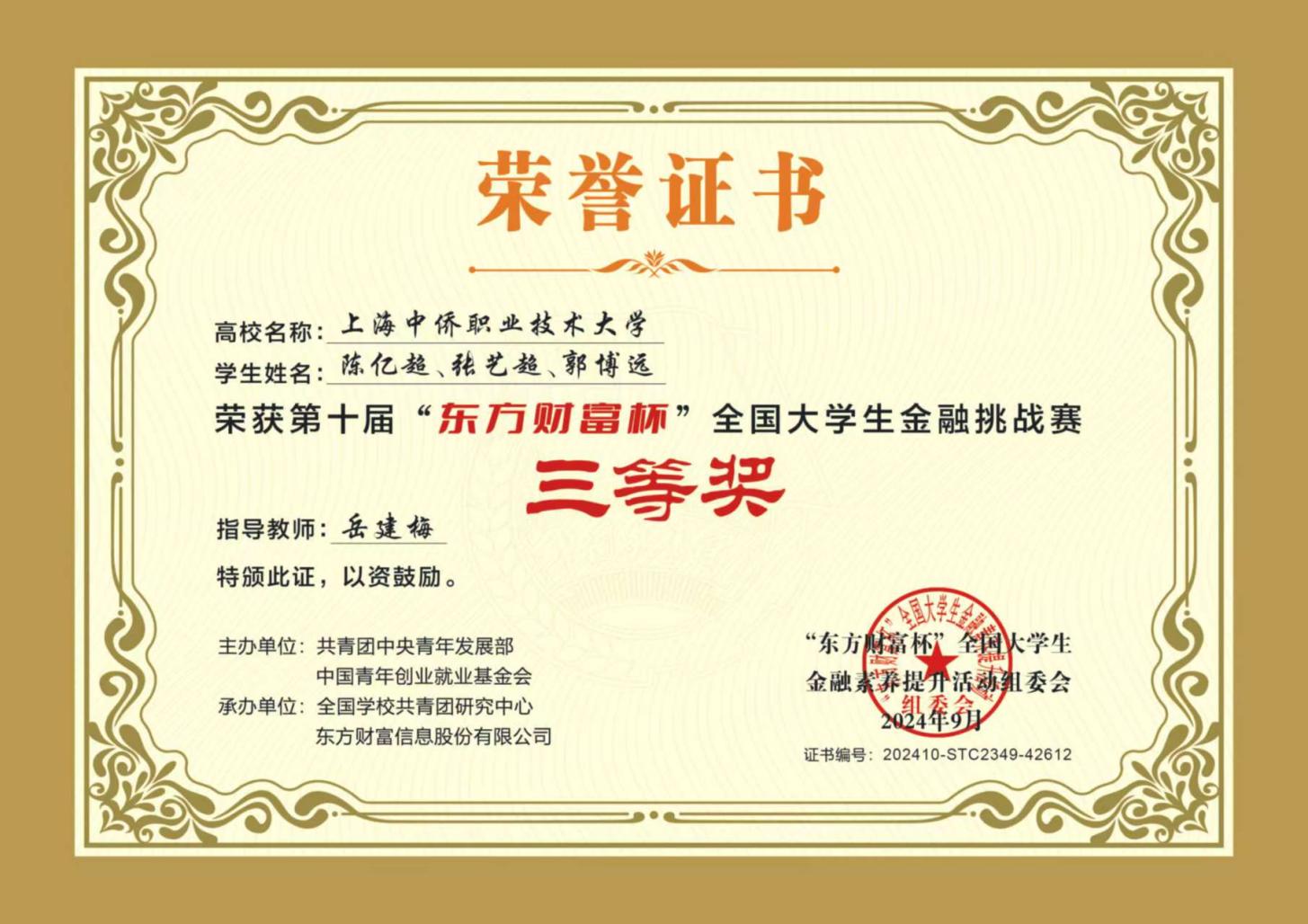 为帮助大学生掌握金融知识,培养投资实践能力,提高金融专业水平,完善就业创业素质,建立形成内容丰富、形式新颖、成效显著的金融实践育人体系,共青团中央青年发展部主办第十届“东方财富杯”全国大学生金融挑战赛.英国365上市公司积极参加此次竞赛并获三等奖一项。
