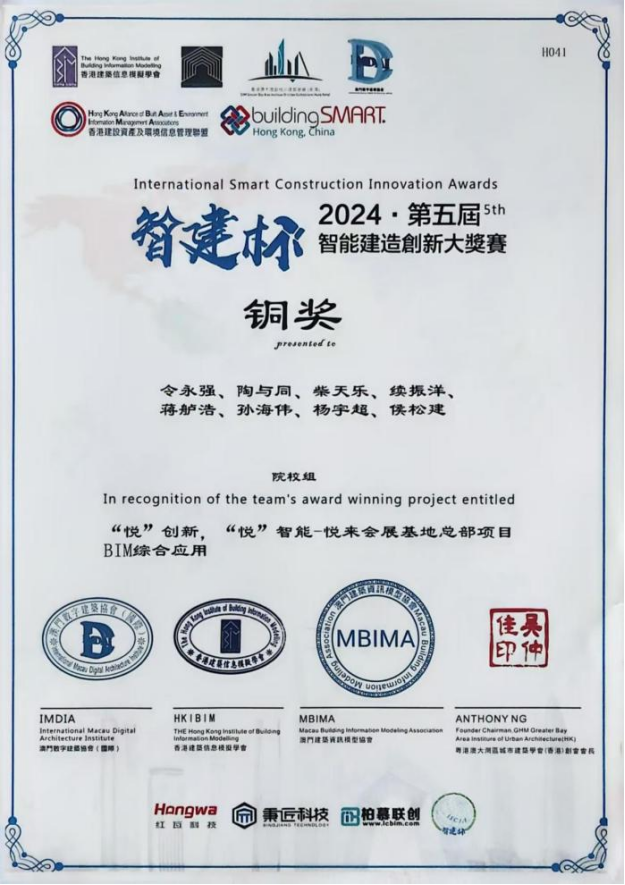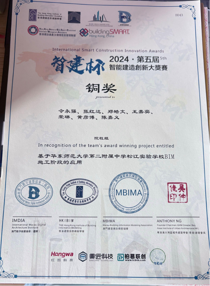 在2024年第五届“智建杯”智能建造创新大奖赛中,由令永强老师指导,陶与同、柴天乐、续振洋、蒋舻浩、孙海伟、杨宇超、侯松建同学组成的专业团队以及张红达、郑皓文、王嘉奕、荣琳、黄彦博、陈嘉义组成的专业团队通过合理安排任务,明确分工合作,齐心协力,最终获得两项铜奖。