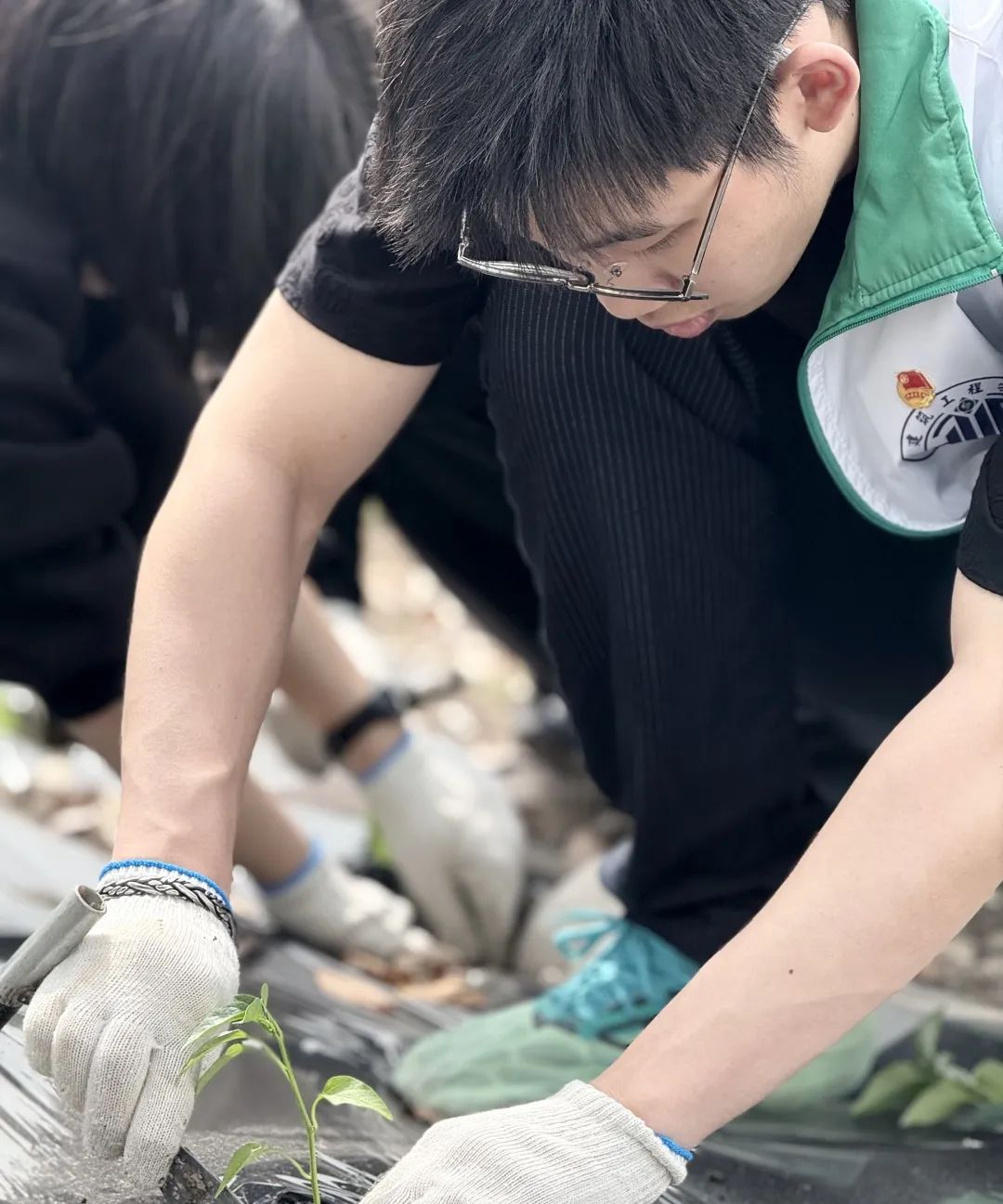 在鲁堰村的小钉子菜园里,师生们积极投入到认领菜园和播种的工作中。同学们手持工具,翻土、平地,随后小心翼翼地种下第一批种子。