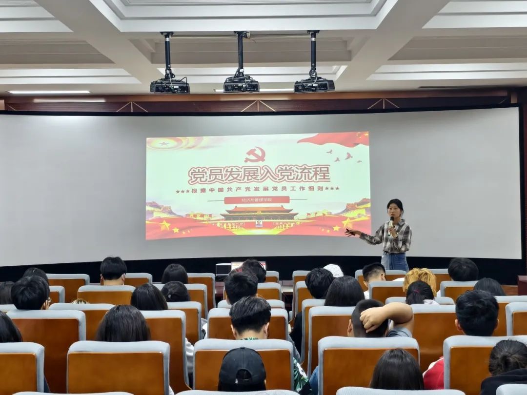 经济与管理学院学生支部组织委员王梦菡老师带来中党第二讲《党 员 发 展 的 规 定 和 程 序》。她总结党员发展的各个阶段,帮助学员系统掌握党员发展的规范流程,理解党组织严把入口关的重要意义,从而在实际工作中严格执行标准,为党输送合格的新生力量。同时她强调入党必须政治合格、思想坚定、作风优良,让同学们思考“我为什么要入党”并作出回答。