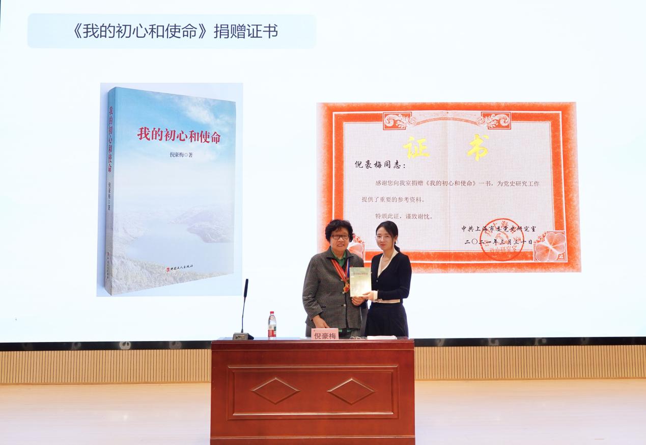 讲座结束后,倪团长亲切地将自己倾注心血撰写的《我的初心和使命》一书捐赠给英国365上市公司,期望同学们通过阅读她的亲身心得,深刻领悟初心不改、使命在肩的时代担当,以书为媒,在书香中汲取力量,勇担建设祖国的青春使命。