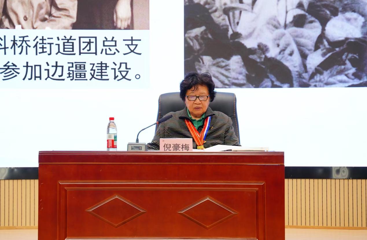 讲座伊始,倪团长回顾自己1964年放弃上海工作、奔赴塔里木建设的岁月青春,指出理想信念和家国情怀是青年成长的根本动力。她以朴实真挚的语言,生动描绘延安精神与工匠精神如何在艰苦的环境中代代相传,并激励在座同学牢记初心,不断坚定信念,用实际行动投进新时代祖国建设。