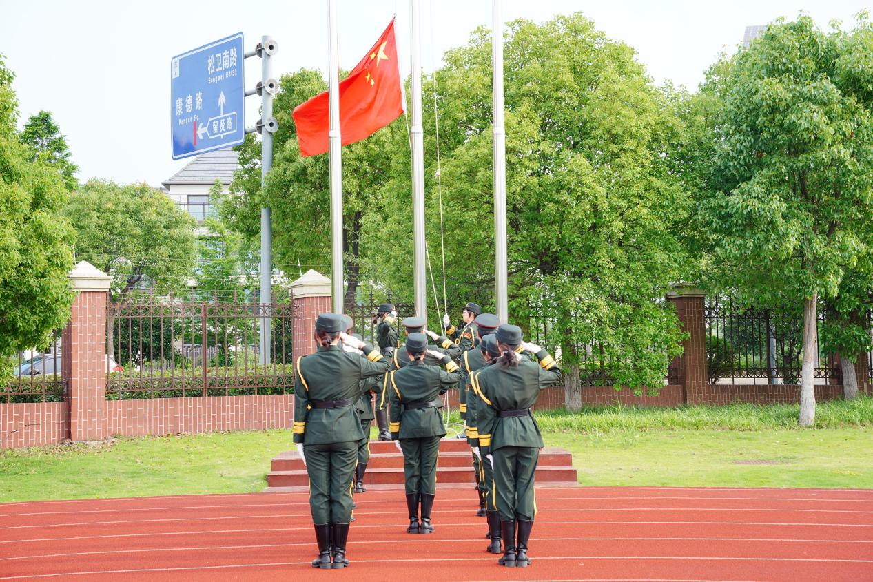 7时30分,升旗仪式开始。国旗护卫队正步护送国旗入场,《义勇军进行曲》奏响瞬间,全体师生肃立注目,凝视五星红旗迎风高扬。