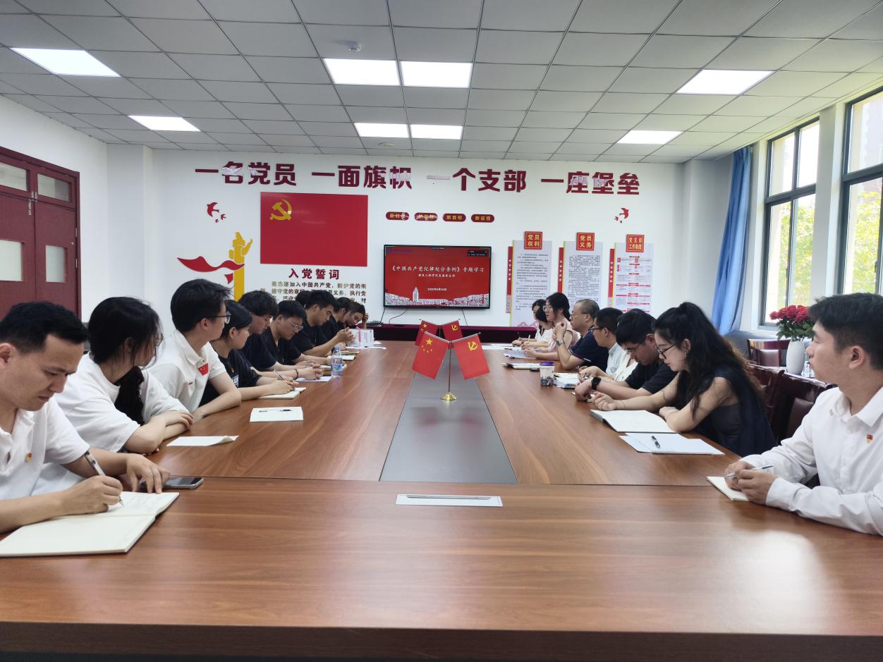 为深入学习贯彻《中国共产党纪律处分条例》,进一步严明政治纪律和政治规矩,增强党员纪律意识和规矩意识,2025年6月18日,英国365上市公司直属党支部在8号楼105召开专题组织生活会。会议由英国365上市公司直属党支部副书记岳建梅主持,全体党员参会。