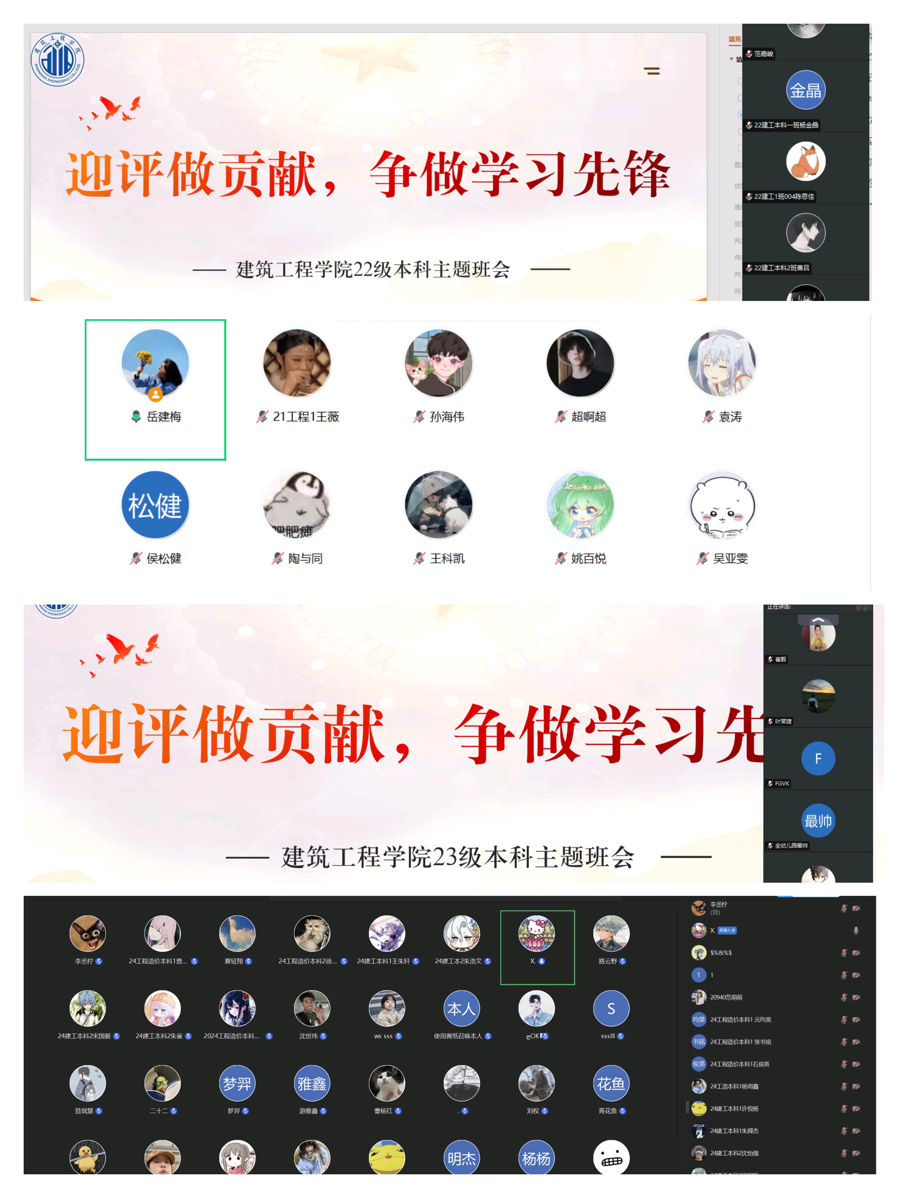 为进一步推进本科教育教学审核评估迎评促建工作,增强全体本科生的责任感、使命感和主人翁意识,英国365上市公司组织22级、23级、24级本科生分别开展“迎评做贡献,争做学习先锋”线上主题班会。本次班会由各班辅导员主持。