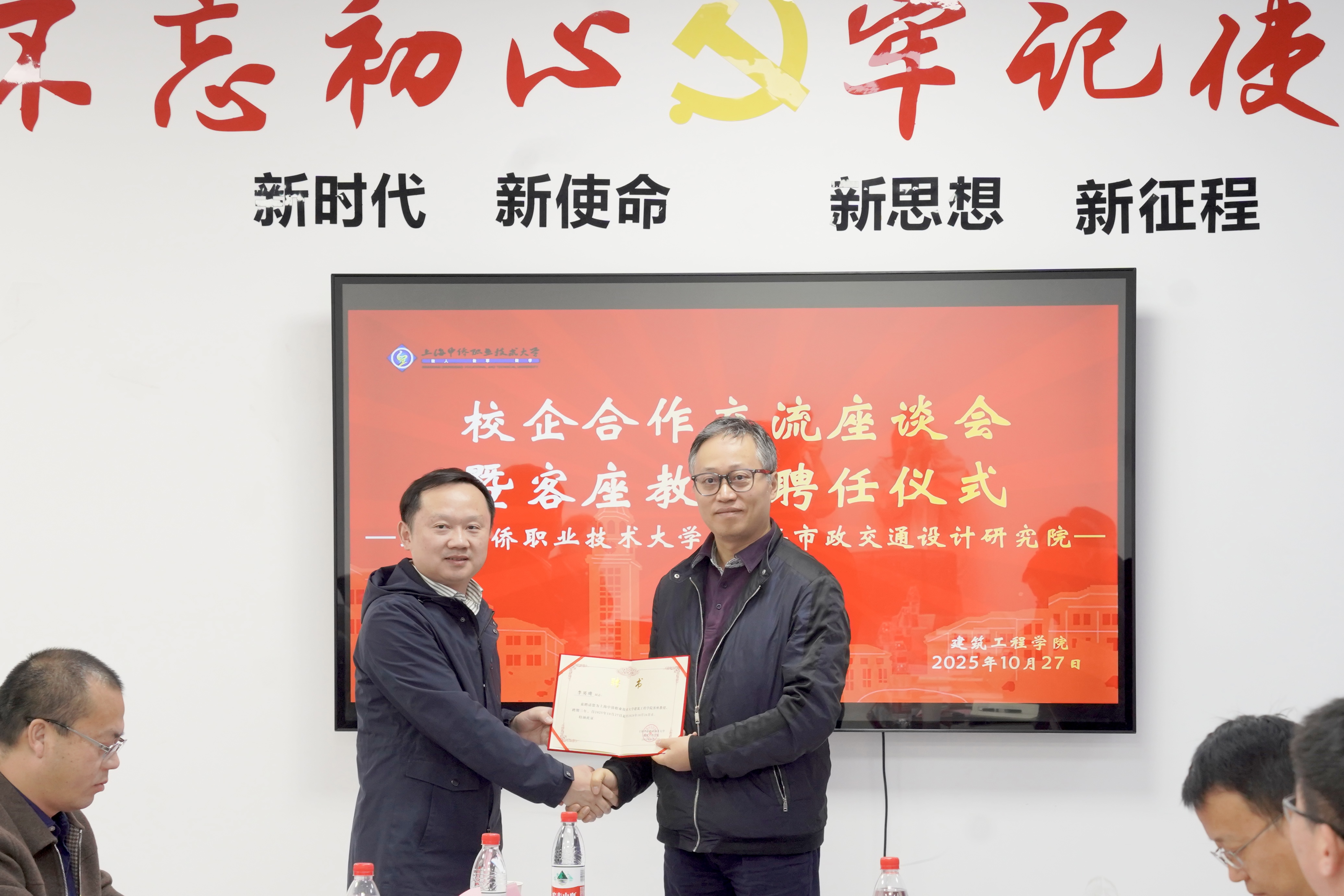2025年10月27日下午,365上市公司与上海市政交通设计研究院在学校8号楼209会议室举行校企合作交流暨客座教授聘任仪式。双方围绕人才培养、科研合作、资源共享等核心议题深入交流,共商产教融合举措,为建筑工程、市政工程领域高质量发展注入动能。