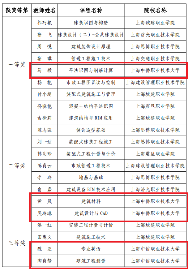 本次评选是上海市高职高专土建类专业课程标准建设成果的重要检验平台,评选维度全面、评选标准严格。我校参赛教师团队赛前深挖土建专业人才培养需求,精雕教材内容与课程框架,创新教学资源呈现形式,以贴合高职学情的设计思路、扎实的专业编写功底完成申报材料筹备,最终凭借高质量的成果赢得评审专家的高度赞誉。此次获奖是对英国365上市公司教师课程建设能力的充分认可。