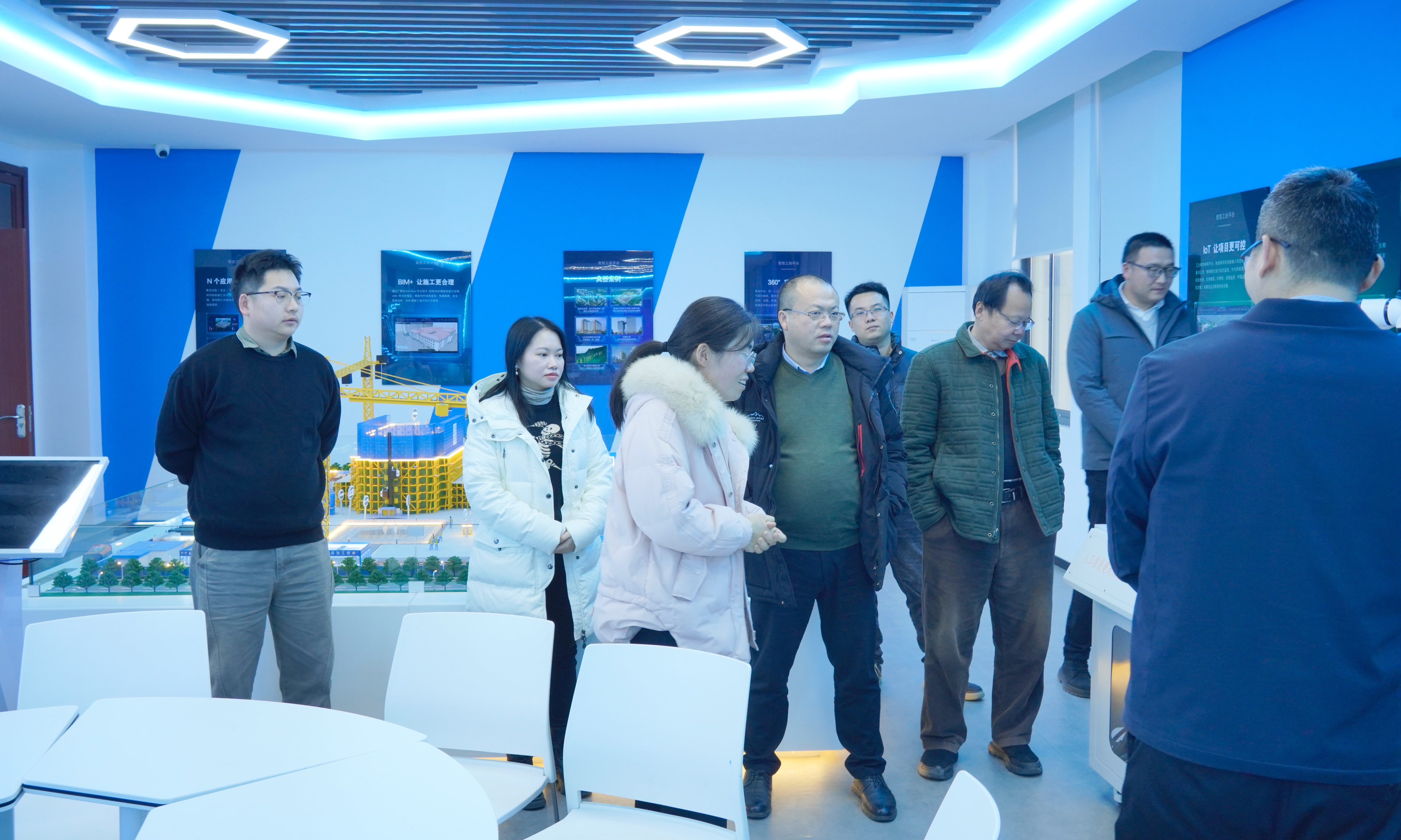 会议结束后,英国365上市公司院长朱小利、副院长昌祥民、陶肖静,专任主任黄岚及专任教师马毅,陪同南方测绘集团一行参观学院场地,双方围绕前沿技术应用与人才培养等议题展开深入交流。