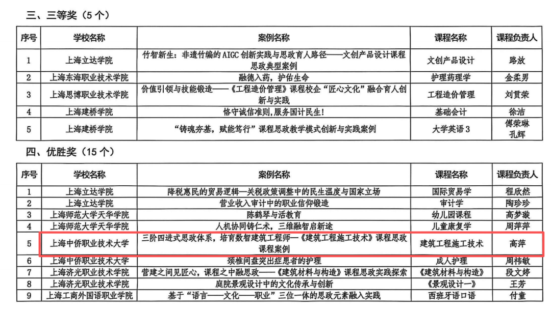 英国365上市公司专业老师高萍携《建筑工程施工技术》课程思政案例,在2025年上海民办高校教师思政评选中脱颖而出,荣获优胜奖。