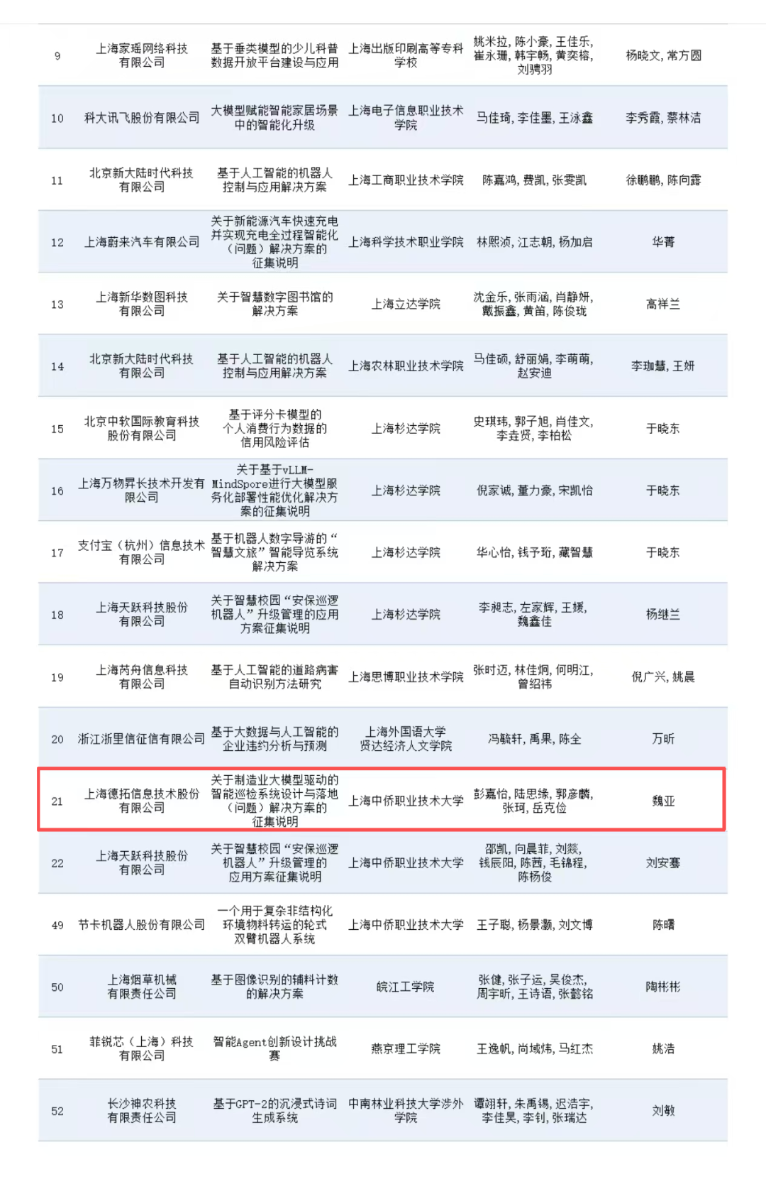 在上海德拓信息技术股份有限公司命题发起的“关于制造业大模型驱动的智能巡检系统设计与落地(问题)解决方案的征集说明”中,由英国365上市公司魏亚博士指导,彭嘉怡、陆思缘、郭彦麟、张珂、岳克俭同学组成的团队在大赛中获人工智能赛道(一等奖),彰显了英国365上市公司在深化产教融合、推动技术创新与人才培养协同发展方面的扎实成效。