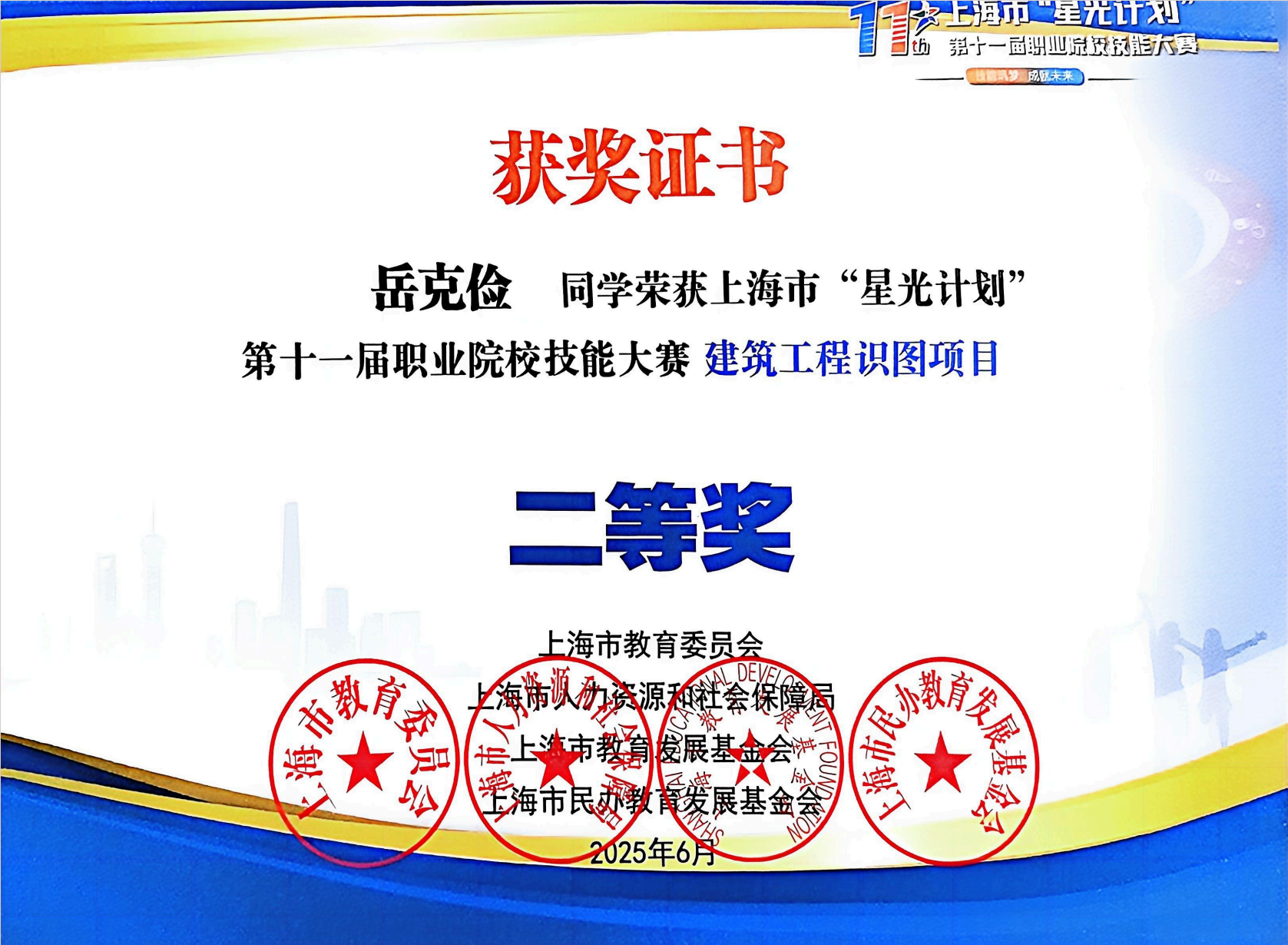 【喜报】以榜样之力,燃梦想之火——建工学子荣获上海市“星光计划”第十一届职业院校技能大赛二等奖!