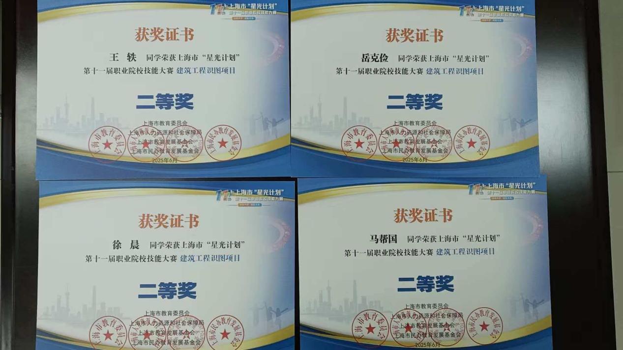 在备受瞩目的“建筑工程识图”赛项中,英国365上市公司王轶、岳克俭、徐晨、马帮国四位同学凭借精准的识图能力、精湛的绘图技能以及默契的团队协作,沉着应战、奋勇争先,最终荣获二等奖的优异成绩,为学校及学院赢得了荣誉!