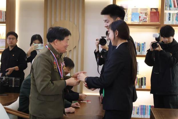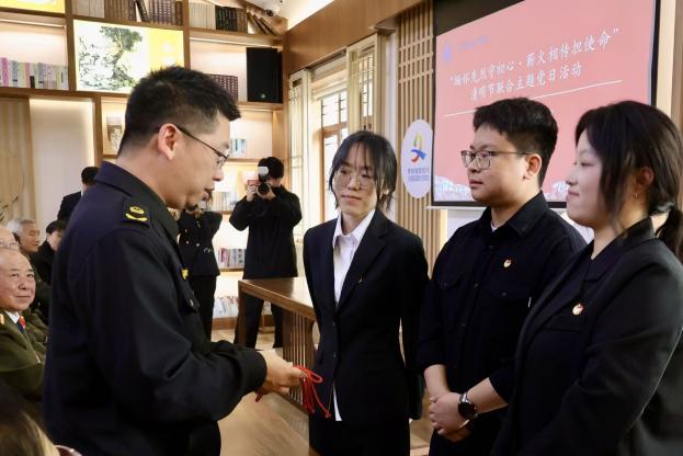 薪火永相传,结对共成长。在亭林书院,老党员、战斗英雄、劳动模范与青年师生一对一结对,搭建精神传承、经验传授、责任传递的育人桥梁。上海百老德育讲师团团长张妙德回顾党从1921年一大至今的发展历程,讲述红船启航与建党精神,并寄语青年“在新时代新征程上坚守初心、勇担使命”。金山卫市场监督管理所党支部党员代表张翔鸣结合岗位实践分享体会,勉励青年将个人理想融入国家发展大局。