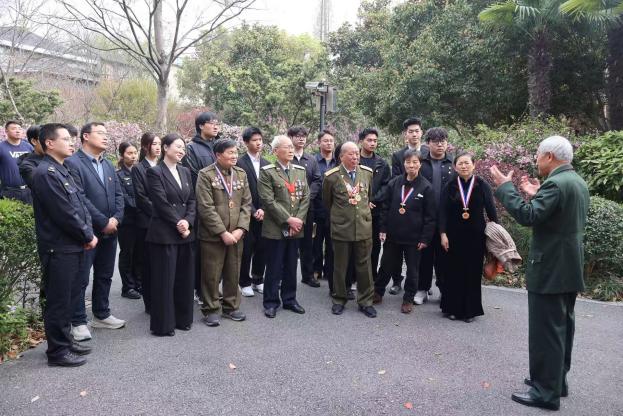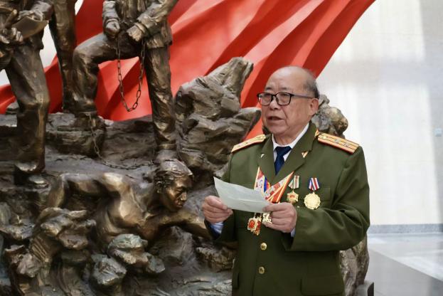 青山埋忠骨,清风寄哀思。活动第一站来到金山烈士陵园。全体人员庄严肃立,齐唱国歌,向革命先烈默哀致敬、依次敬献鲜花。对越自卫反击战战斗英雄、一等功臣朱山荣围绕长征精神作微宣讲,讲述战火岁月中的信仰坚守与担当,诠释“革命理想高于天”的坚定信念,铿锵有力的话语让师生深切感悟民族气节和英雄气概,历史回声激荡每一位青年心灵。随后,全体党员在朱山荣的带领下庄严宣誓,再次重温入党誓词,坚定初心使命,践行责任担当。